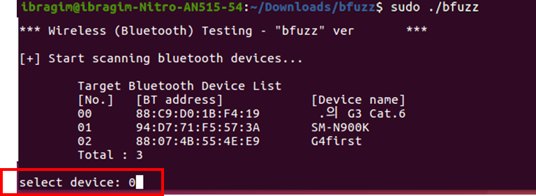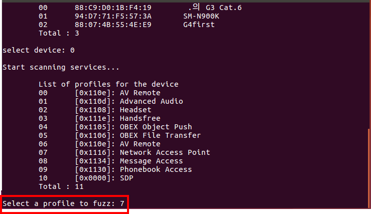 Bluetooth Fuzzer (bfuzz) is a tool for discovering implementation errors of Bluetooth BR/EDR (BT Classis) devices by using smart and stateful fuzzing techniques. The fuzzing engine automatically generates possible vulnerable inputs regarding 4 kinds of Bluetooth core protocol specification (L2CAP, OBEX, RFCOMM, SDP) to find known/unknown vulnerabilities in the Bluetooth host stack of target devices.