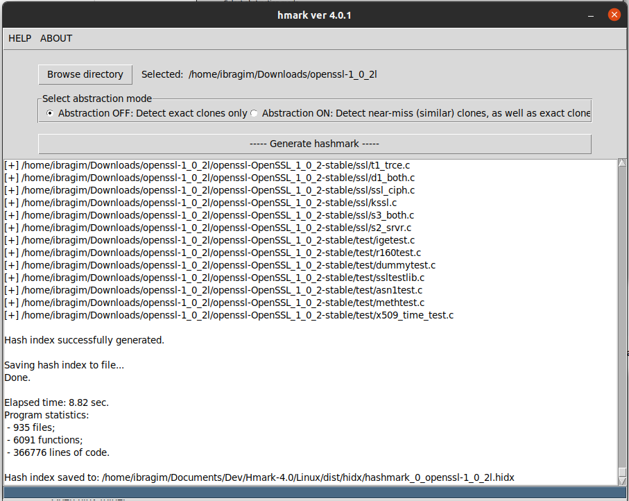 When hash index generation is complete, the file is stored under ~/PATH/TO/hmark/hidx/ directory.