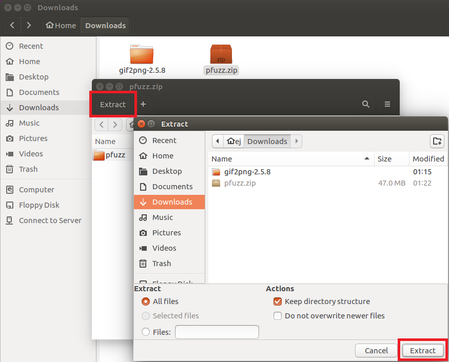 Please unzip the package "pfuzz.zip" downloaded in the previous step with your own unarchiving tool.