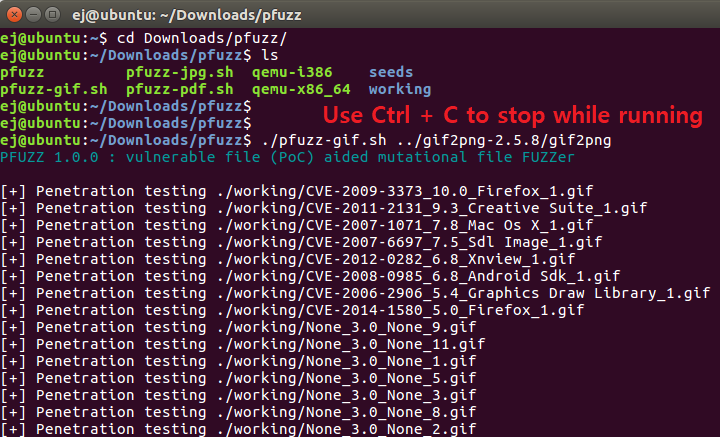 If you want to stop the fuzzing process, press Ctrl + C