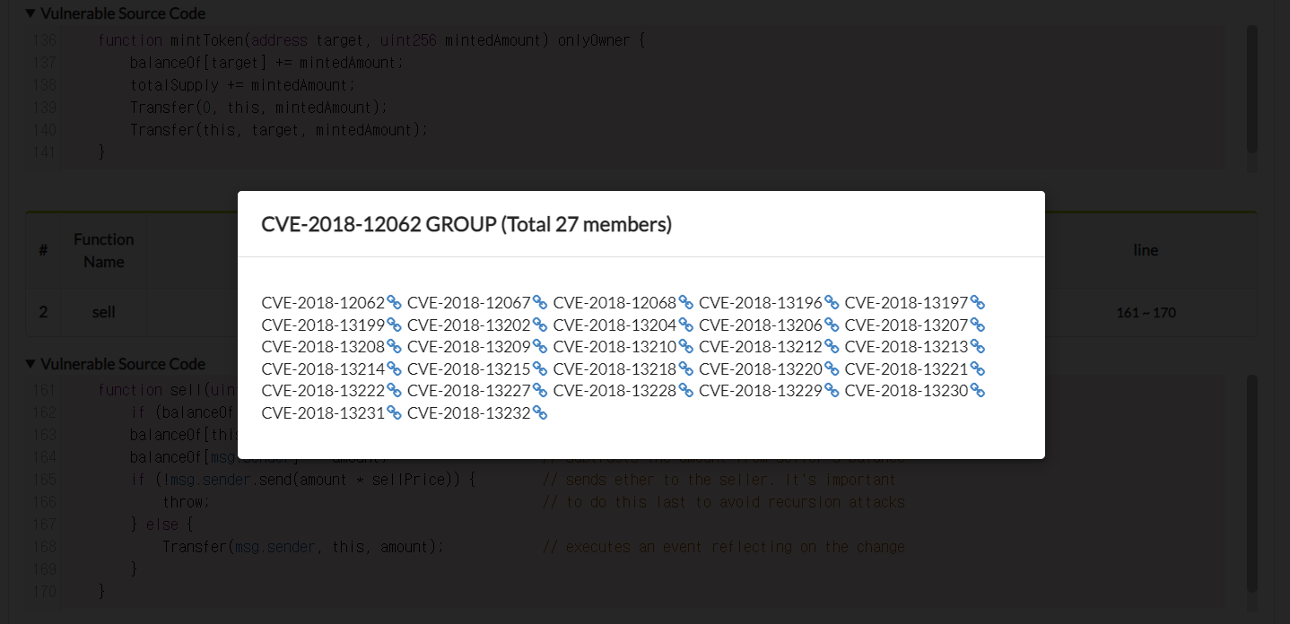 3.) Click related cve_id to check CVE group memebers which have same vulnerable code
