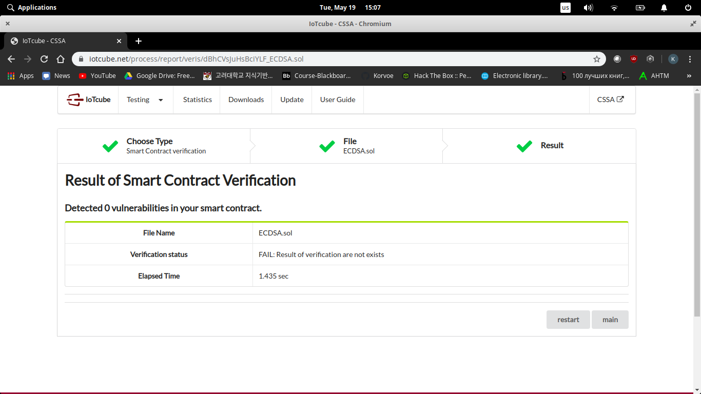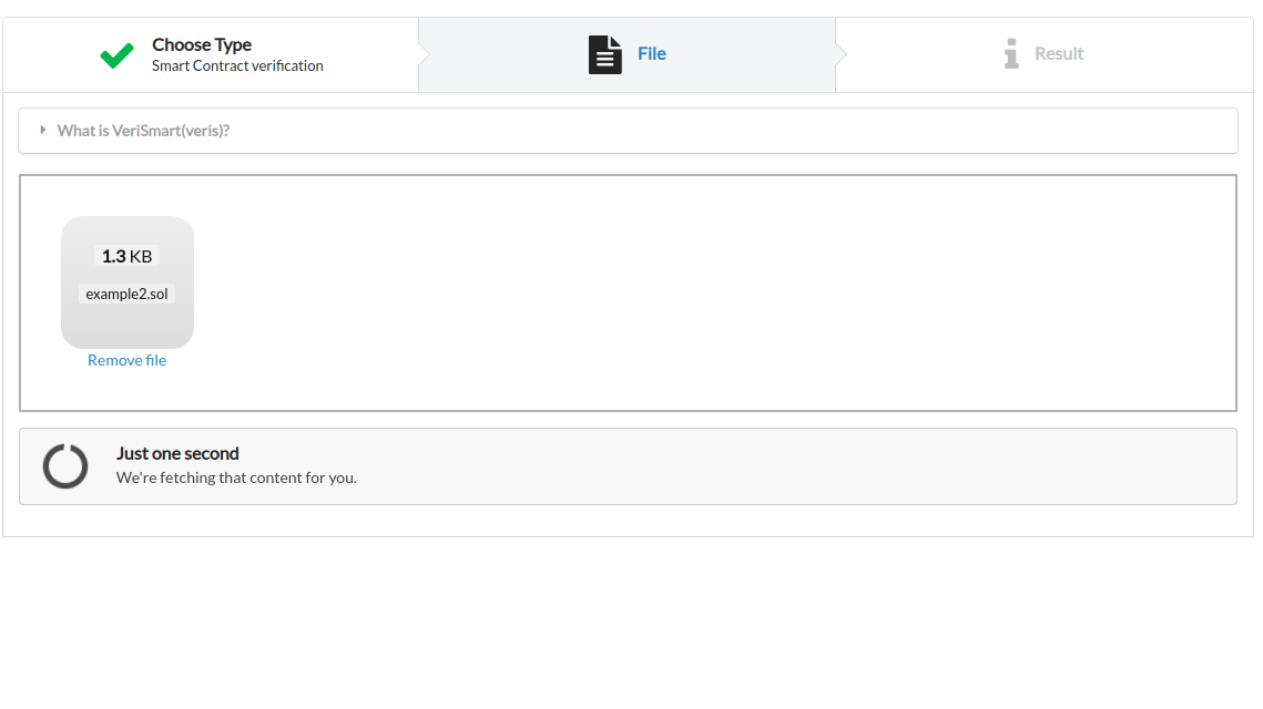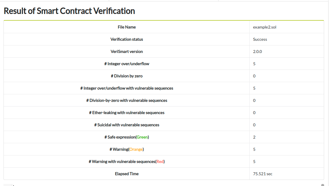 After uploading your *.sol file, it will be verified by VeriSmart and show you the result of verification.